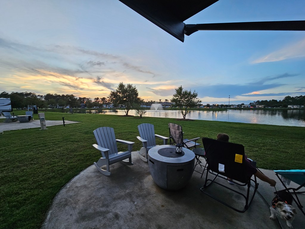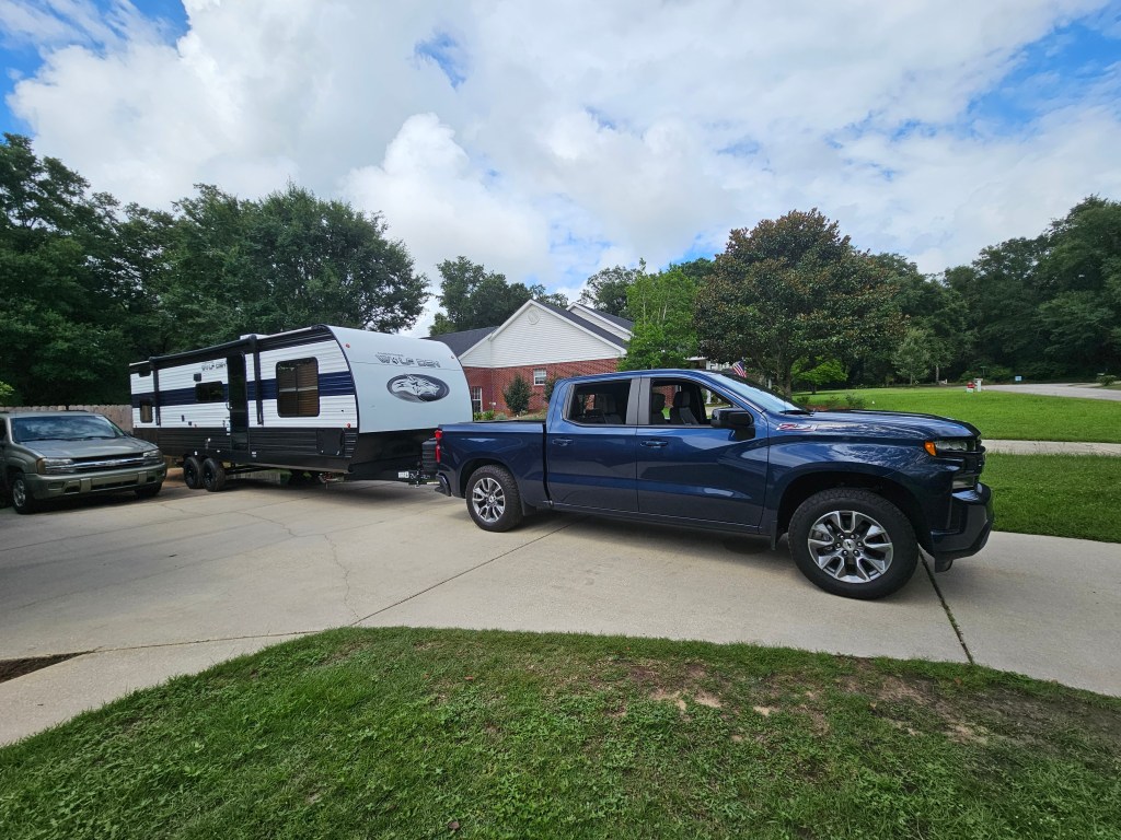 Now it’s packing the food stores, and the co-pilot (Acheron) gear, hook up to the truck (2022 Chevy Silverado) and make the drive to Sun Outdoors RV Park in Orange Beach.